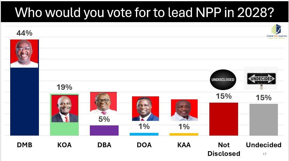 Polls in October 2025 showed Dr. Bawumia is likely to win the flagbearer nomination. Image Source: Global Analytics