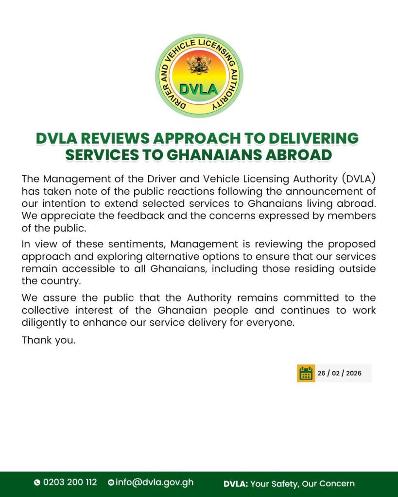 The DVLA issued a second statement acknowledging the public outcry. The institution says it would review its approach and explore alternative options for Ghanaians in the diaspora.