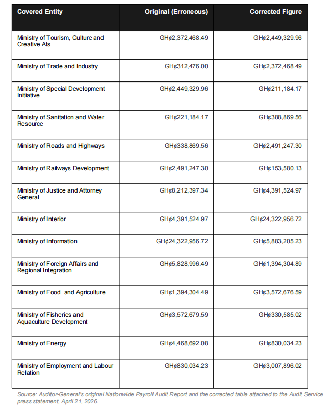 It is important to distinguish between the error and the underlying story. The Auditor-General’s broader payroll audit found that more than 6,000 government employees received over GH¢800 million in unearned salaries.