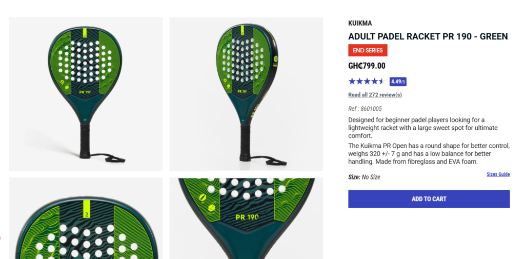 A padel racket can cost anywhere from 800 GHC to 3000 GHC for the high-end professional rackets.